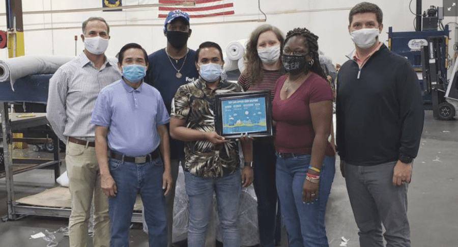 Members of the Culp sewn mattress cover operation in High Point, which received the 2020 Sustainability Award from ICE Recycling for achieving landfill-free status.